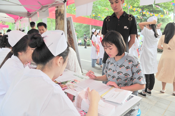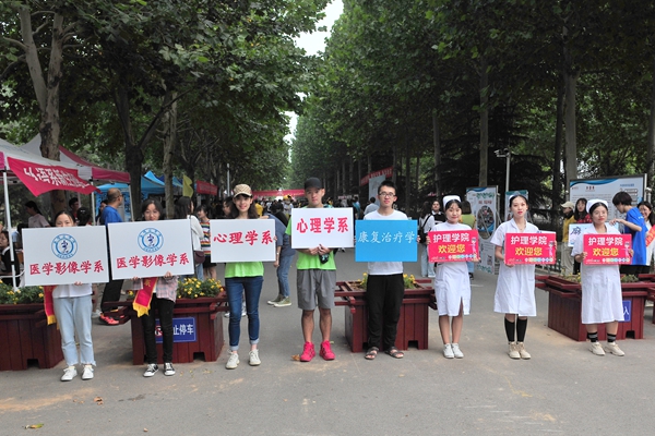 在各院(系)的迎新报到处,工作人员周到的服务、有序的安排,给家长和新生留下了深刻而又美好的印象。各院(系)结合专业特点,以特色创意喜迎新生。临床医学院为新生和家长安排了“拍立得”,即拍即洗照片记录入学美好时刻;康复医学院准备了学院专属名信片送给新同学;公共卫生与管理学院的“心愿箱”,收集了新生对祖国的热爱和对潍医的祝福;护理学院设置“大学宣言墙”,制作“护理学院新生护照”;口腔医学院为广大新生及家长提供口腔义诊服务;麻醉学系设置心肺复苏急求技能学习等专业技能体验区;心理学系现场开展阳光心理健康普查活动;医学检验学系为每位新生量身定制了专属福袋;药学院、生物科学与技术学院、医学影像学系、外语系的网络迎新、一对一服务和新生家长见面会等活动,获得频频点赞。