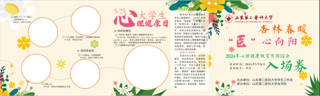 一年一度的“5·25大学生心理健康日”即将来临!今年的心理健康教育月活动形式多样。在这里我们诚挚的邀请大家参加5月11日学生工作处大学生心理健康教育中心举办的大学生心理健康教育月游园会活动。